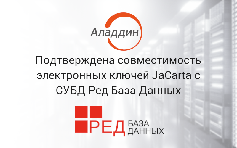 A compatibility certificate was signed, asserting that Aladdin's JaCarta USB tokens and smart cards work correctly together with RED SOFT's Red Database DBMS when using CryptoPro CSP versions 5.0 and higher.