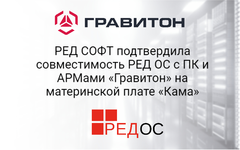 Производитель вычислительной техники «Гравитон» и «РЕД СОФТ» провели тестирование и подтвердили совместимость операционной системы РЕД ОС с системными блоками и автоматизированными рабочими местами (АРМ) на основе материнской платы собственного производства «Кама».