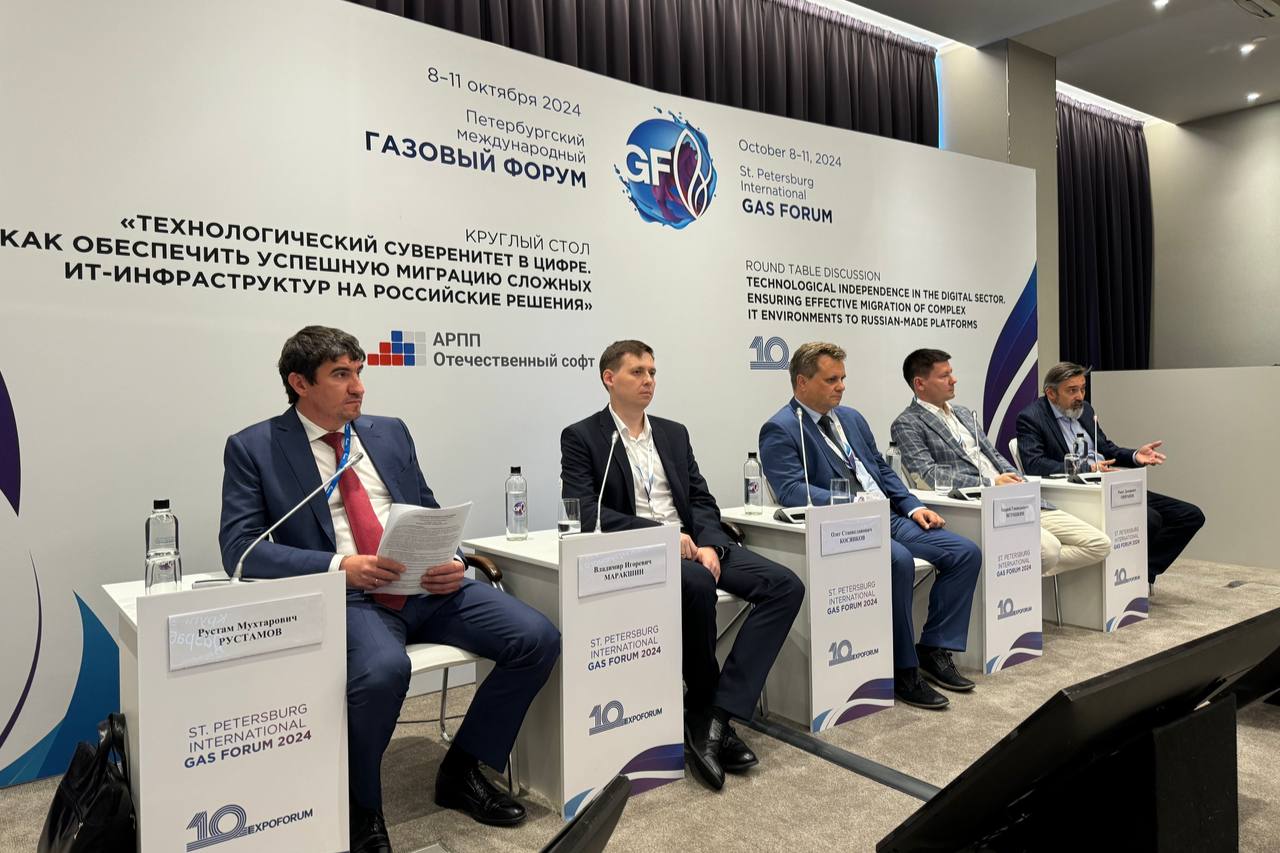 Санкт-Петербург, 8 октября 2024 года – Компания РЕД СОФТ, разработчик отечественных операционных систем и решений для цифровой трансформации, приняла участие в дискуссии «Технологический суверенитет в цифре. Как обеспечить успешную миграцию сложных ИТ-инфраструктур на российские решения» в рамках секции АРПП «Отечественный софт» на Петербургском международном газовом форуме (ПМГФ-2024).